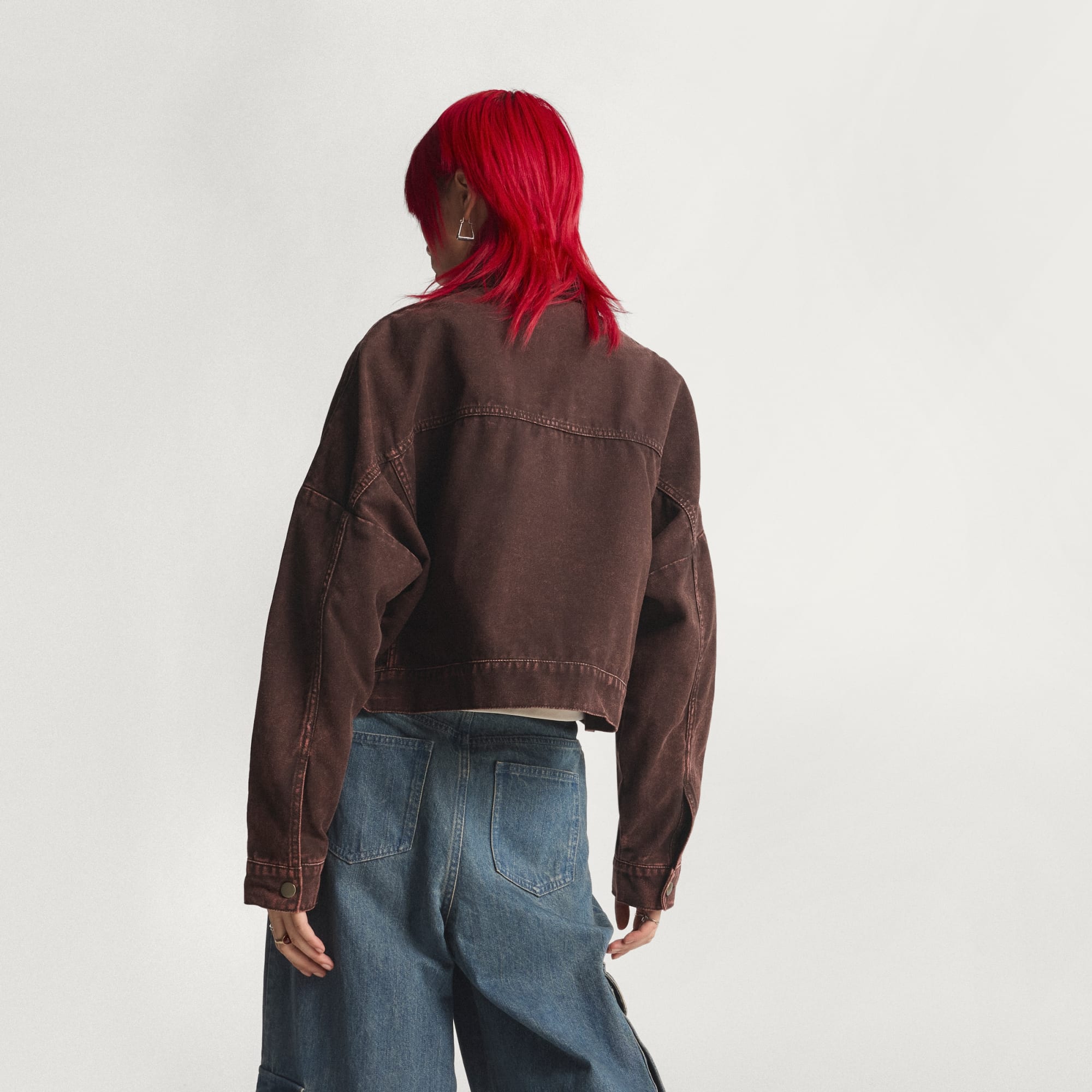 Casaca de lona con cierre de botones para un estilo de uso fácil.