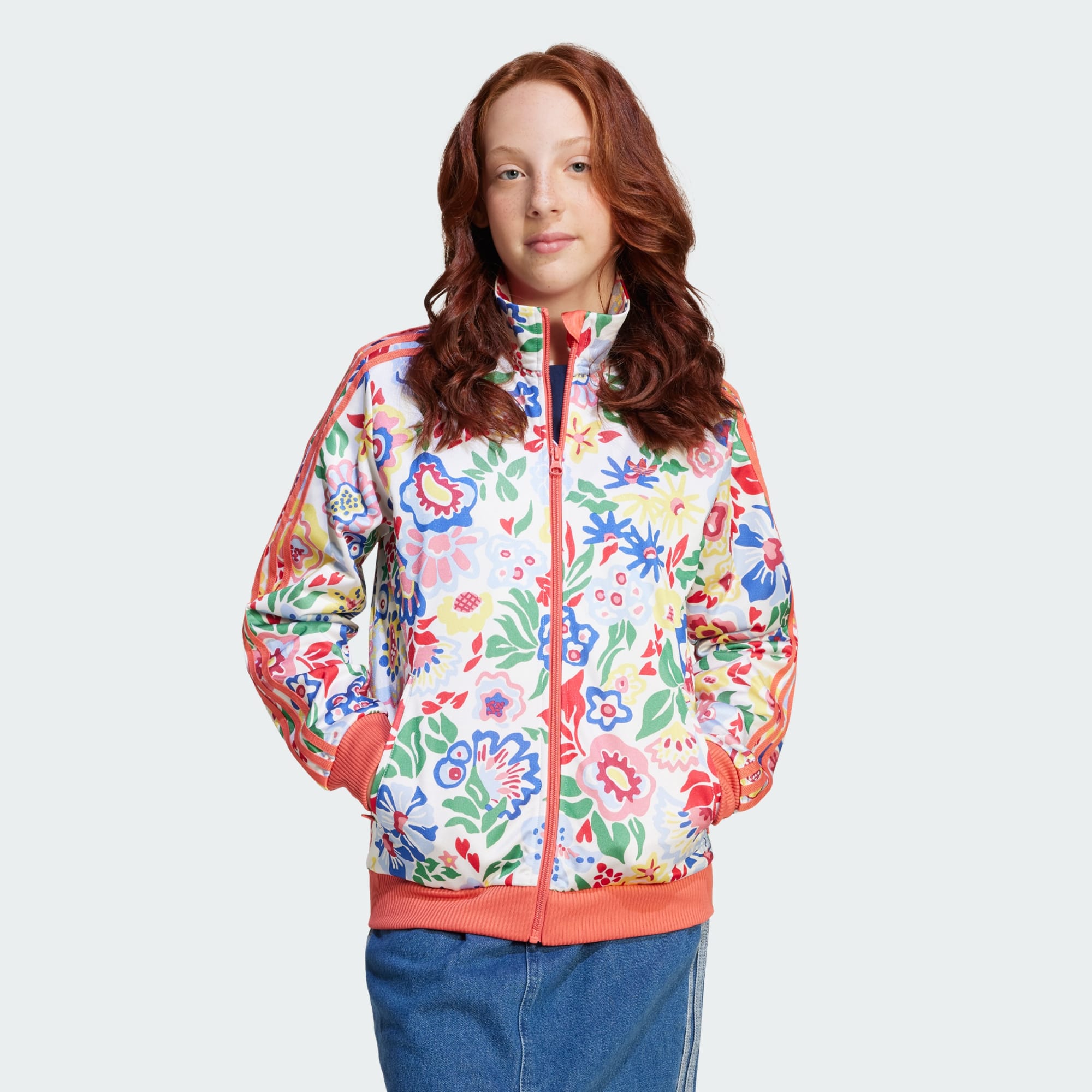 Esta casaca deportiva adidas Firebird para jóvenes, diseñada en colaboración con la tienda departamental del lujo Liberty London, combina una silueta básica con un diseño fresco y llamativo. Luce un arte floral pintado a mano y un diseño brillante y alegre con un look que no pasa desapercibido. Confeccionada con un corte holgado de tejido tricot deportivo, incluye un cierre de cremallera para que puedan ponerla y quitarla fácilmente y un acabado acanalado en el dobladillo y los puños. El logo del Trifolio en el pecho y las 3 Tiras a lo largo de las mangas le imprimen el sello adidas.