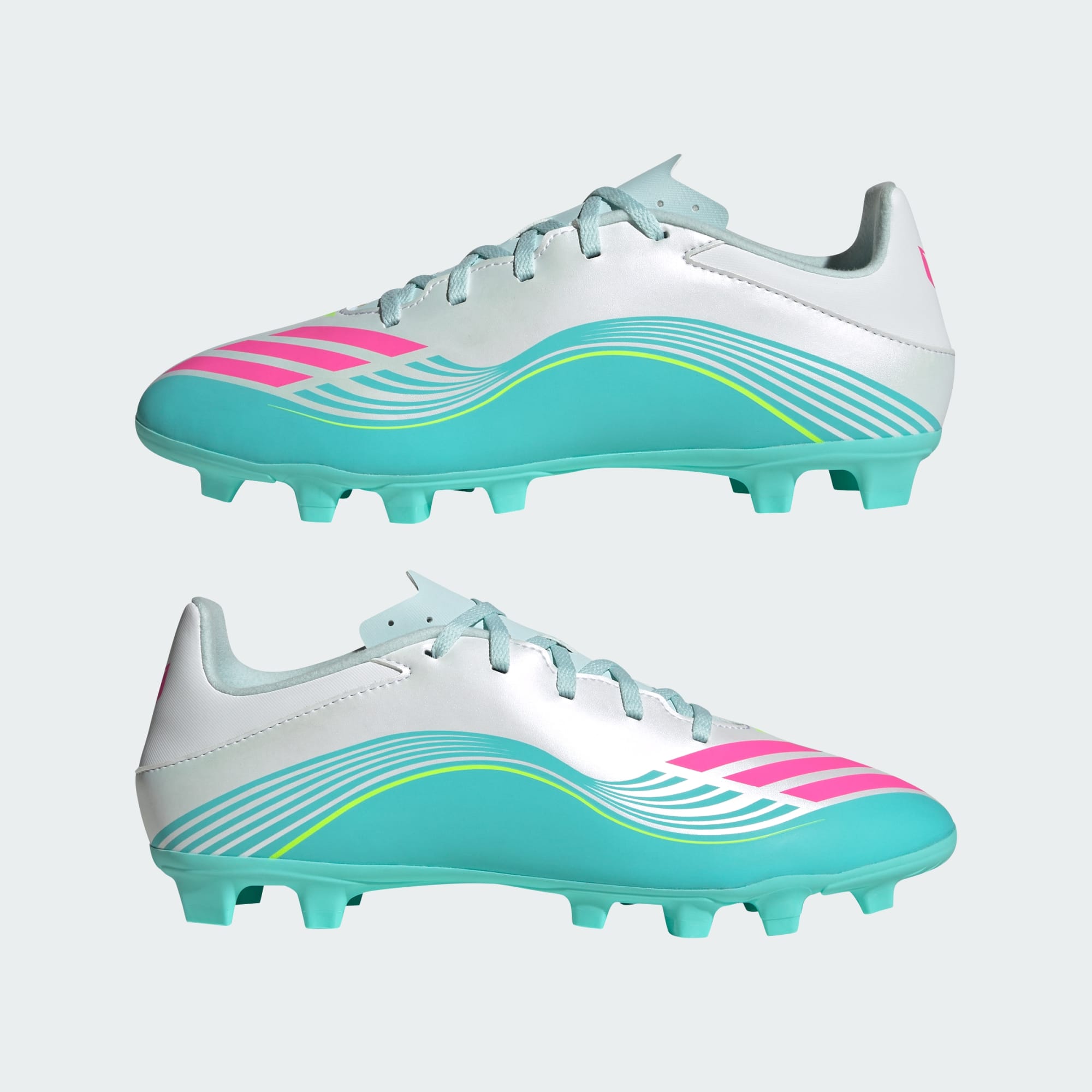 Cuando se trata de fútbol, herencia e innovación van de la mano. Los Chimpunes F50 Messi Club para Terreno Firme/Multiterreno rinden homenaje al estilo y el rendimiento legendarios de Messi. Diseñados con tecnología moderna y orientada al rendimiento, estos chimpunes se adaptan a las preferencias de Messi en cuanto a ajuste y diseño. Disfruta de una sensación de ligereza y suavidad que favorece la velocidad. La lengüeta sintética flotante está diseñada para ofrecer una mayor transpirabilidad, lo que ayuda a mantener los pies frescos durante los partidos intensos. El exterior de material sintético ligero brinda apoyo y amortiguación para mayor comodidad. Con un moldeado optimizado para terreno firme/multiterreno, estos versátiles chimpunes ofrecen tracción en canchas de pasto natural y en diferentes tipos de pasto artificial. El distintivo de marca adidas y el logo Messi añaden un toque de estilo, mientras que el sistema de amarre de pasadores ayuda a proporcionar un ajuste seguro.