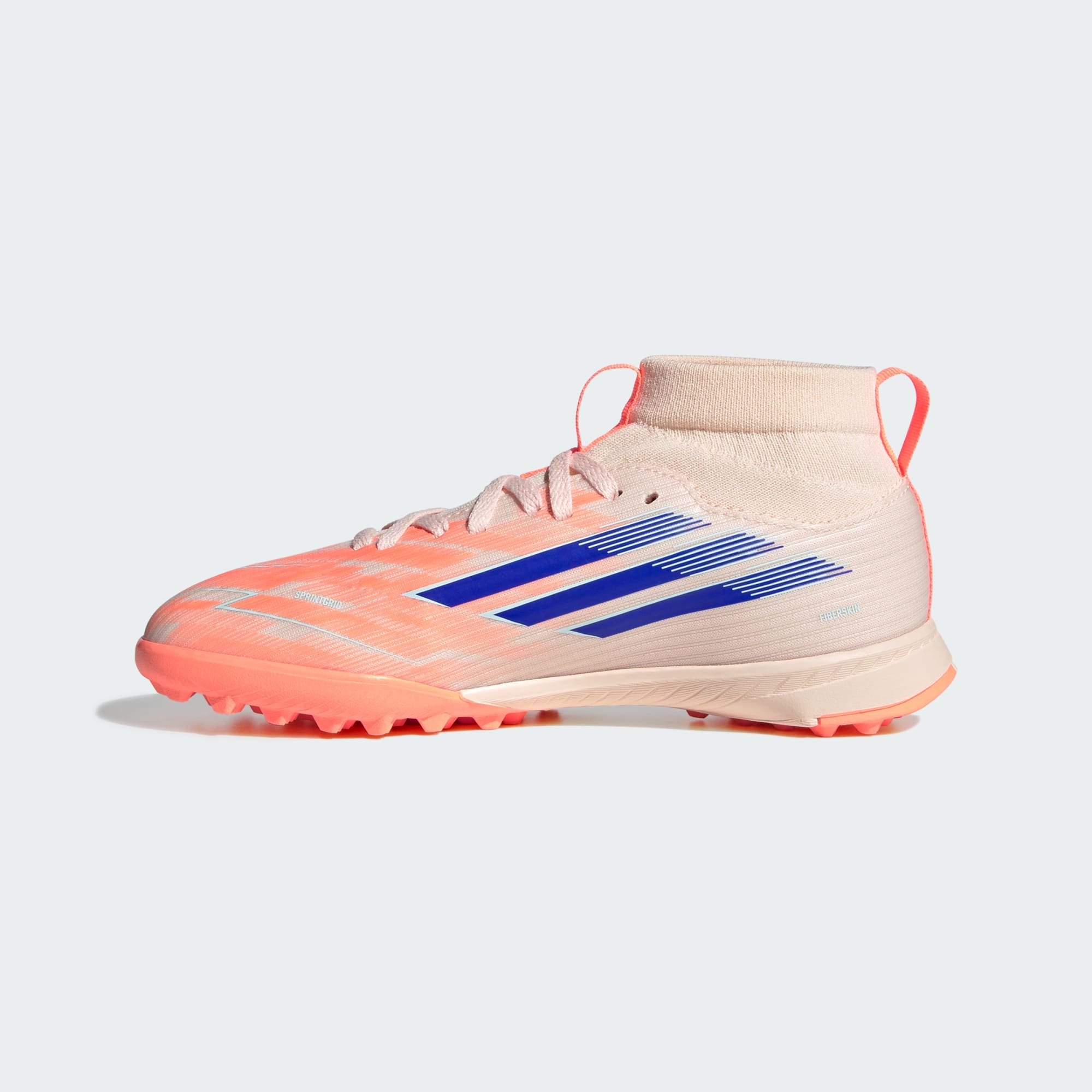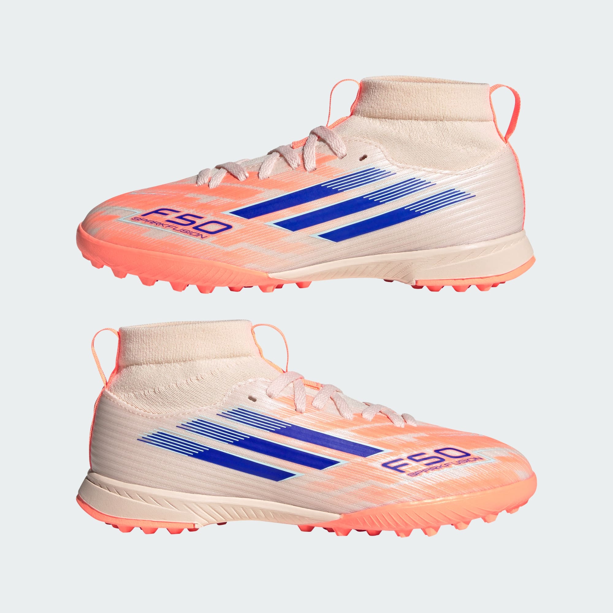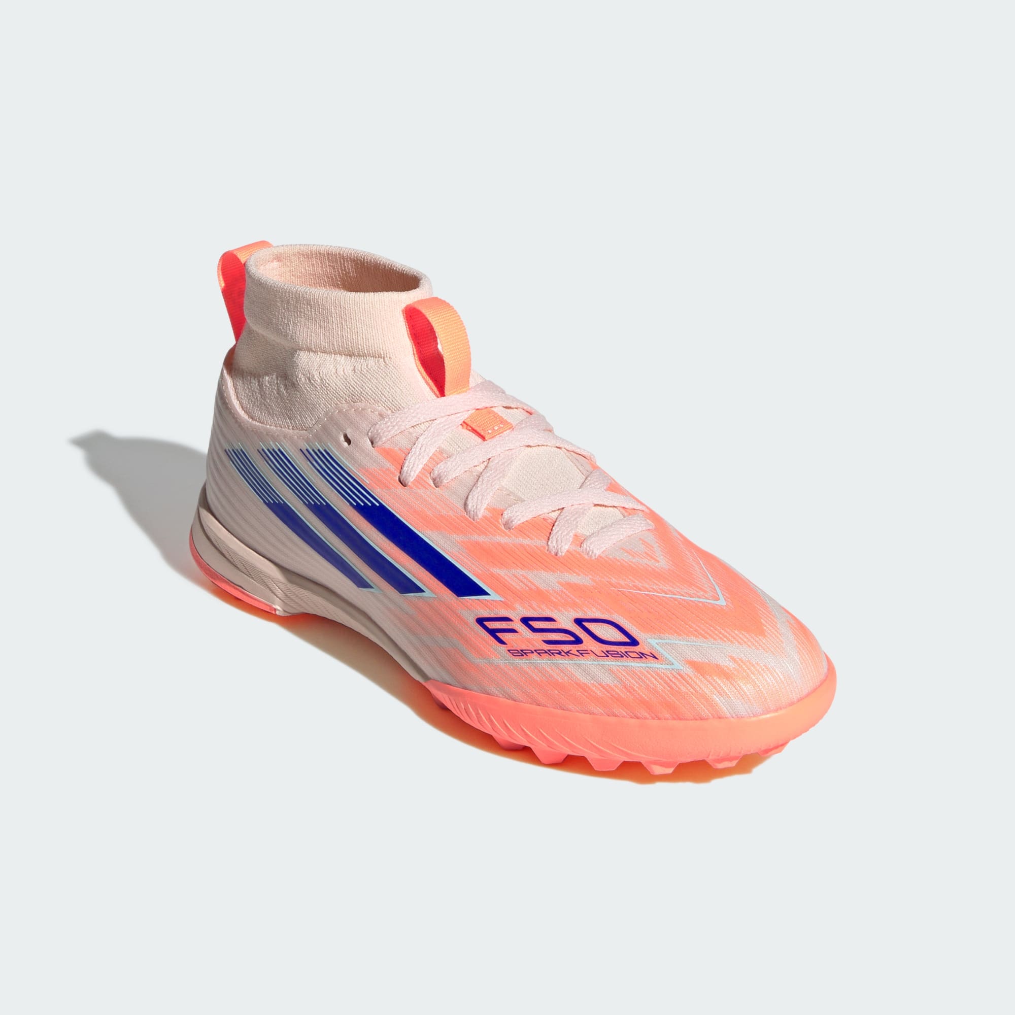 Diseñados para ellas. Ilumina la cancha con los chimpunes de fútbol F50 Sparkfusion con sujeción, creados especialmente para atletas mujeres. Estos chimpunes adidas League para niñas tienen un exterior Fiberskin suave para mayor comodidad, una horma especial para un ajuste perfecto y una suela de caucho con toperonles bajos para tracción en pasto sintético. ¿El resultado? Chimpunes que impulsarán tu habilidad futbolística.