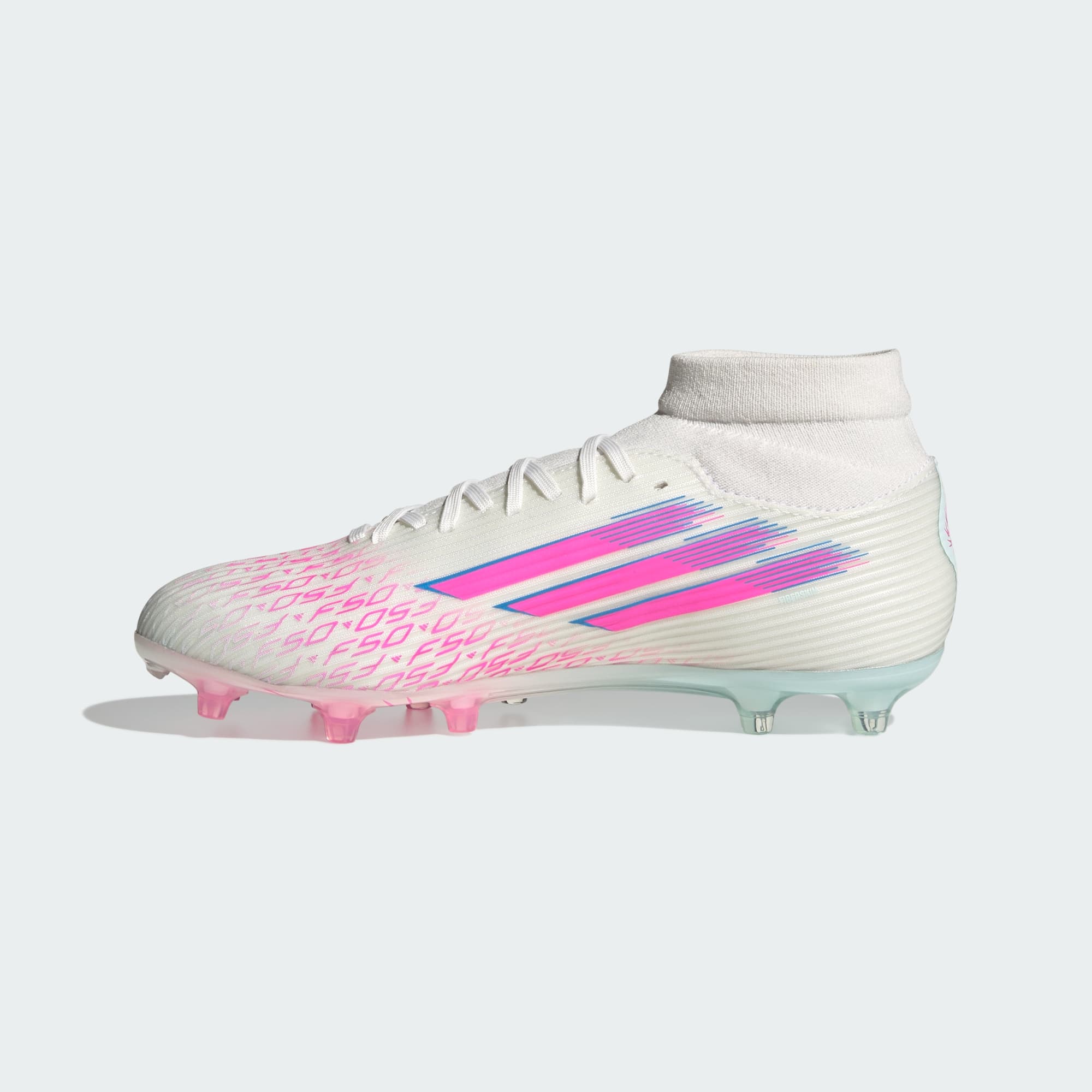 Diseñados para ellas. Ilumina la cancha con los chimpunes F50 Sparkfusion con sujeción, creados especialmente para atletas mujeres. Estos chimpunes adidas League tienen un exterior suave Fiberskin para mayor comodidad, una horma con forma especial para un ajuste perfecto y una suela Sprintplate Fusion que favorece la biomecánica femenina. ¿El resultado? Chimpunes que te ayudarán a desarrollar todo tu potencial futbolístico en terreno firme y césped artificial.