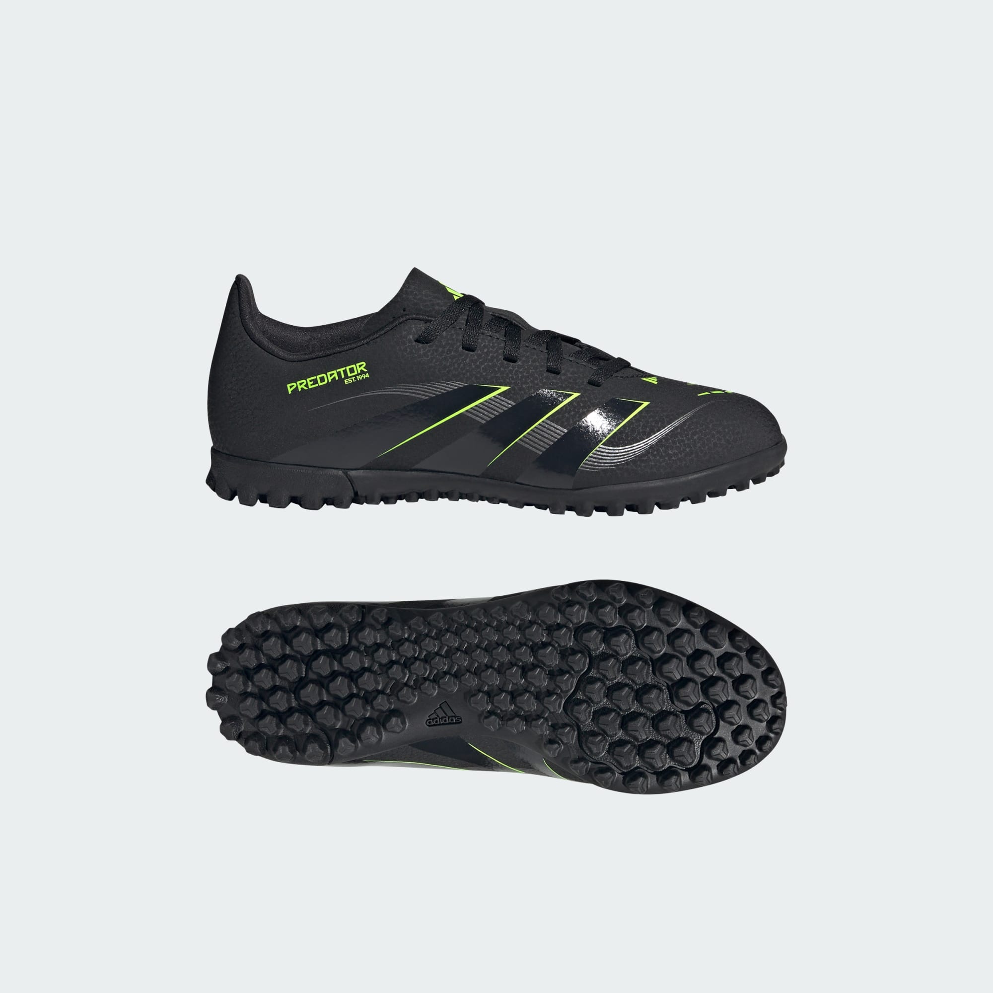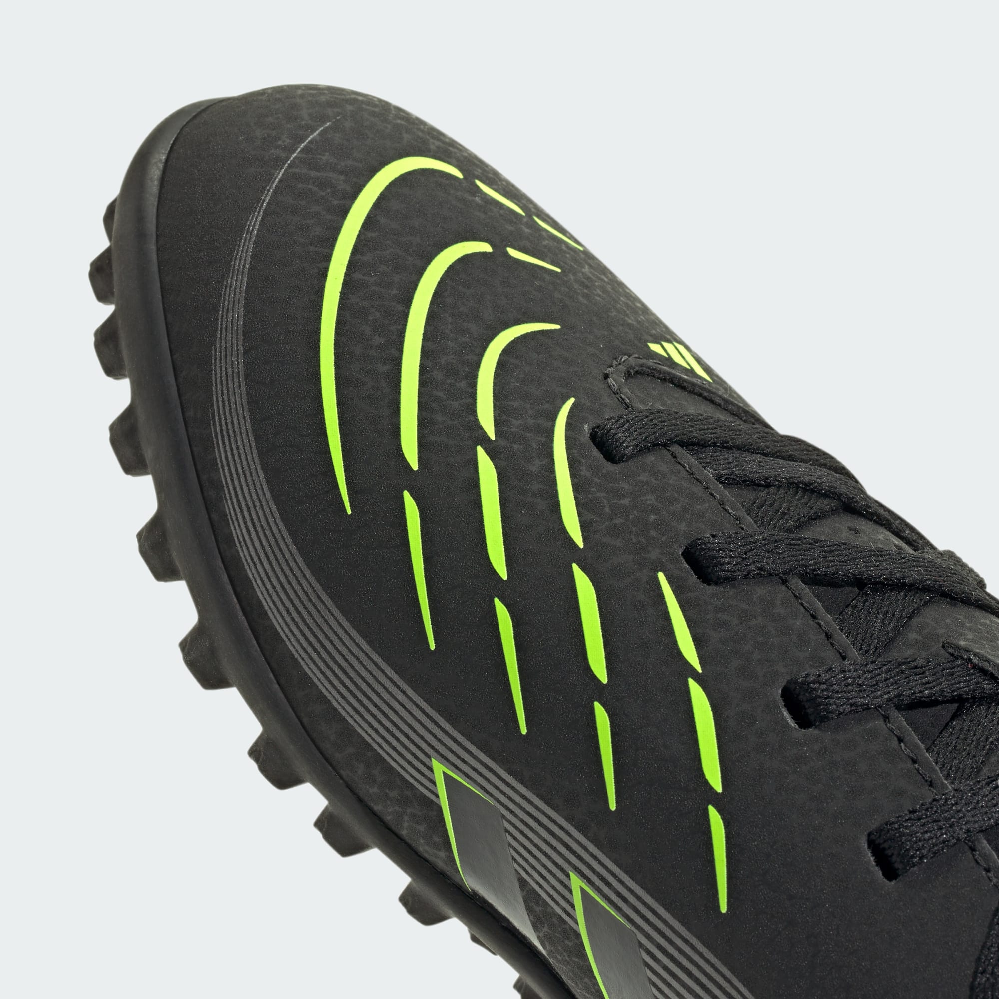 Descubre la diferencia entre aspirar a meter goles y saber que lo harás con los chimpunes adidas Predator, diseñados para goleadores. Estos chimpunes de fútbol Club para niños tienen un exterior de material sintético cubierto con textura Strikeprint de gran agarre para un mejor control de la pelota. Su suela de caucho con tacos está diseñada para colocarte en las mejores posiciones de tiro en canchas de pasto sintético.