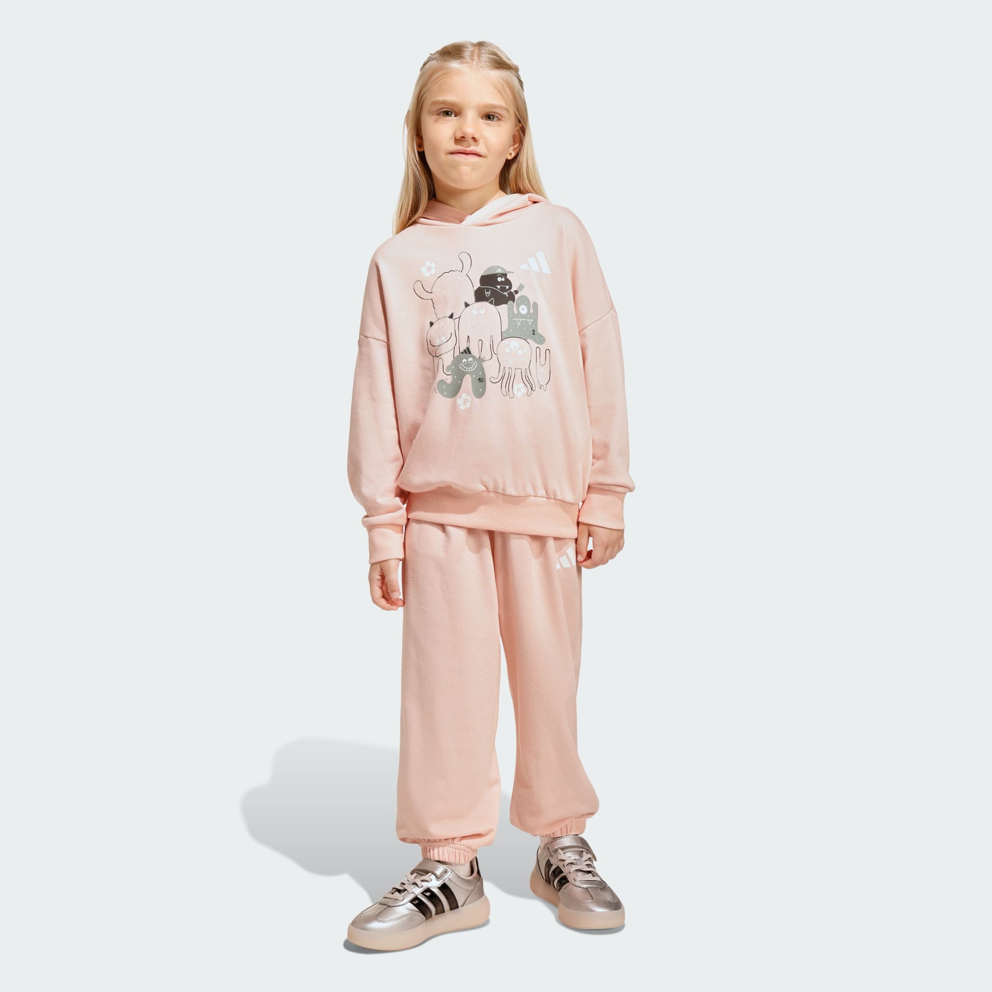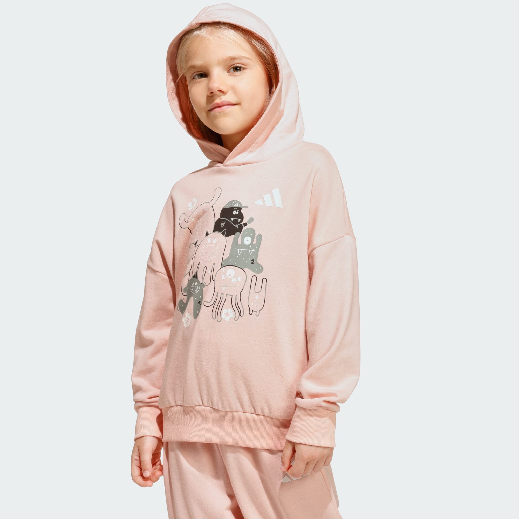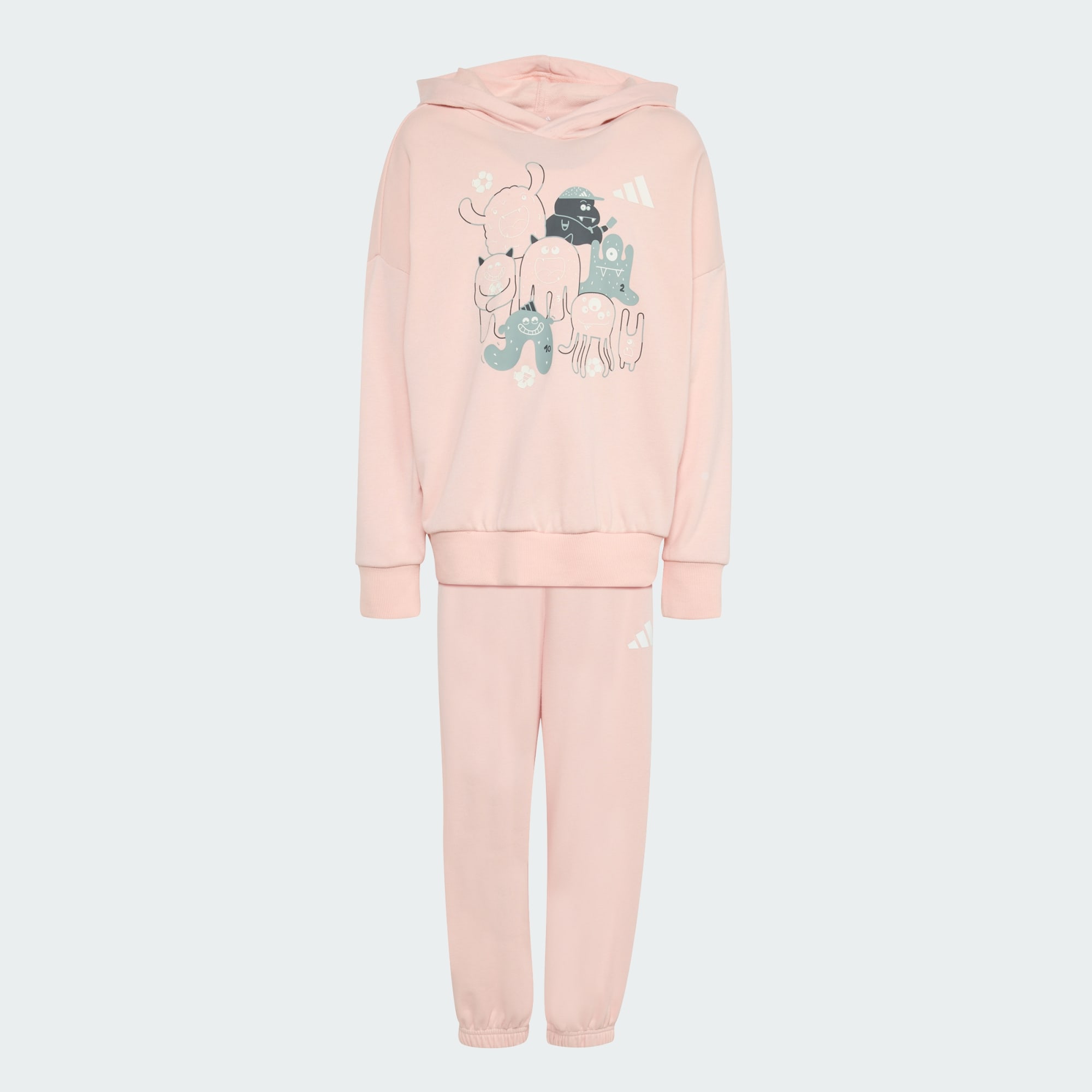 Los jóvenes aficionados al fútbol pueden aportar una energía monstruosa a los momentos de juego con el conjunto de pantalón Jogger TIRO_NSTER. Inspirado en la emoción de la Copa Mundial de Fútbol 2026, combina la energía deportiva con divertidos personajes monstruosos, cada uno de los cuales representa un papel clave en la cancha: arquero, delantero, defensa y entrenador. Juntos, celebran el trabajo en equipo y la colaboración de una forma colorida y creativa. Fabricado en suave tela de felpa francesa, este conjunto combina comodidad y diversión para el uso diario. El corte holgado facilita el movimiento para correr, saltar y jugar, mientras que el emblemático logo de las 3 Barras en el pecho y la pierna añade un toque de autenticidad adidas. Acabado con alegres estampados de monstruos futbolistas y una etiqueta colgante adhesiva coleccionable, este conjunto aporta energía divertida a los armarios de los niños; diseñado para el movimiento, impulsado por adidas.
