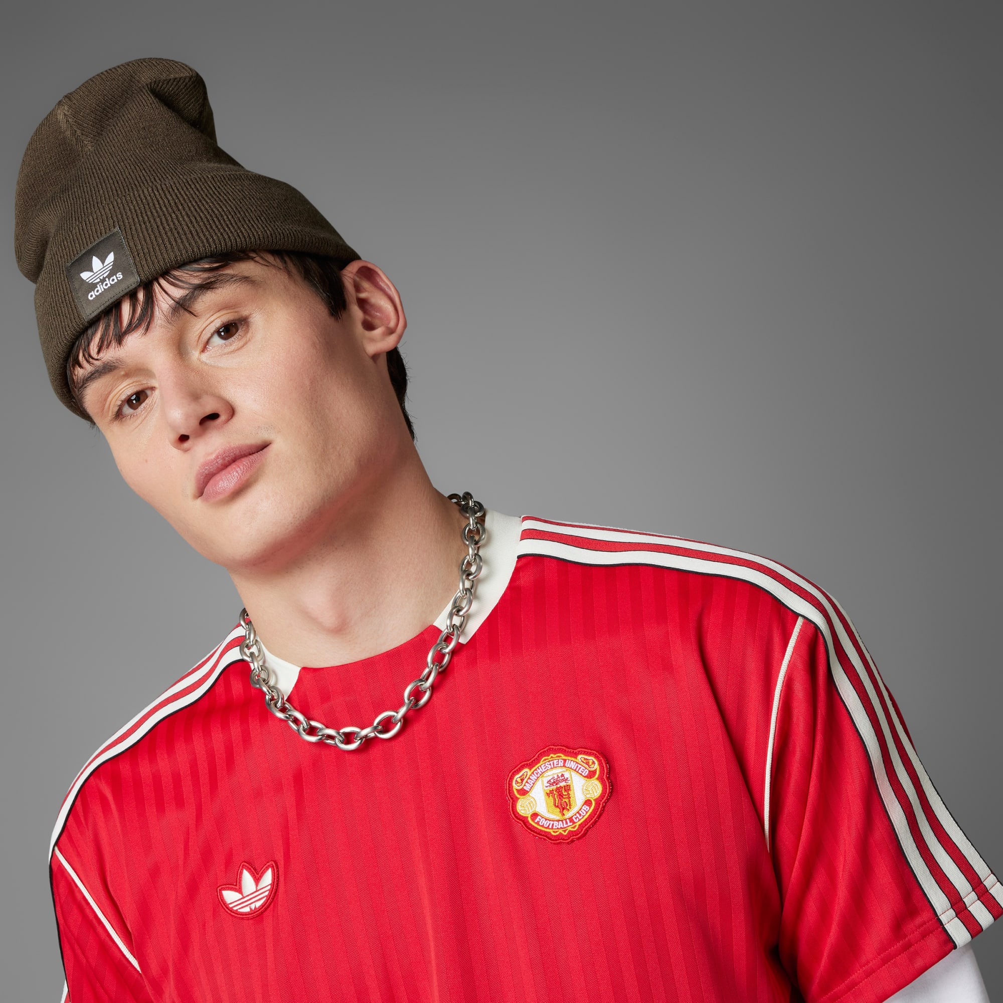 This adidas Manchester United jersey pays tribute to a decade that changed football fashion forever. Packed with retro details like that Trefoil and '80s-era club badge, it's made from dull-shiny fabric. The baggy fit will ensure it's a pleasure to pull on every time you feel like representing the beautiful game. This product is made with 100% recycled materials. By reusing materials that have already been created, we help to reduce waste and our reliance on finite resources and reduce the footprint of the products we make. This jersey was made using UNITEFIT — an all-gender fit system that was created with a spectrum of sizes, genders and forms in mind.