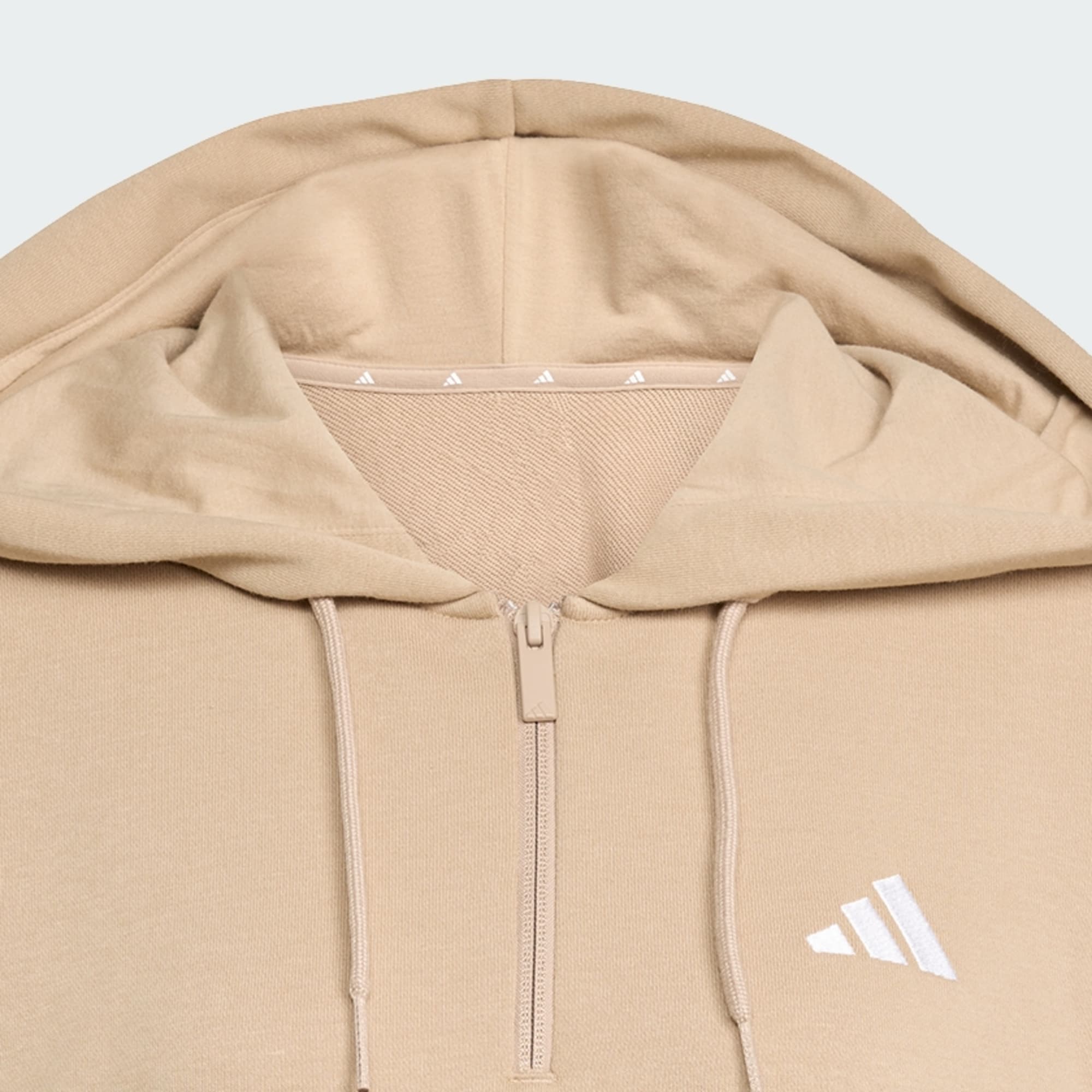 Polera con Capucha Essentials 3 Tiras Felpa Francesa Cierre Corto
