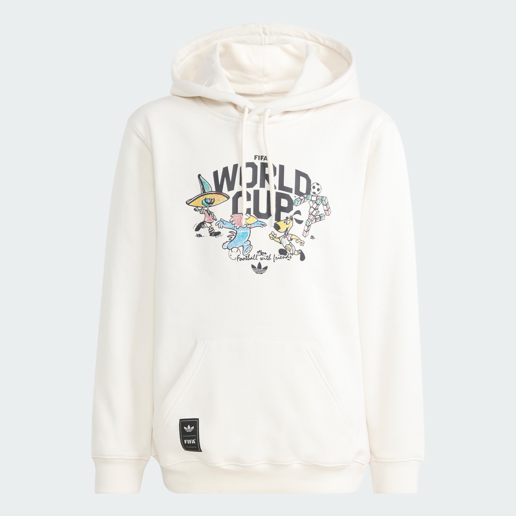 Diseñada para los aficionados más jóvenes, la Polera Copa Mundial de la FIFA 26™ Mascot rinde homenaje a la rica herencia del fútbol y lleva la emoción de la Copa Mundial a sus aventuras cotidianas. El tejido suave ofrece calidez y comodidad durante el juego, las actividades escolares o mientras anima a su equipo favorito. El icónico logo del Trifolio añade un toque de la herencia de adidas, mientras que la capucha con cordón de ajuste ofrece un corte ajustado. Ya sea en el patio de recreo o viendo el partido, esta Polera está diseñada para que los niños se sientan cómodos y elegantes mientras sueñan con marcar goles y hacer historia.