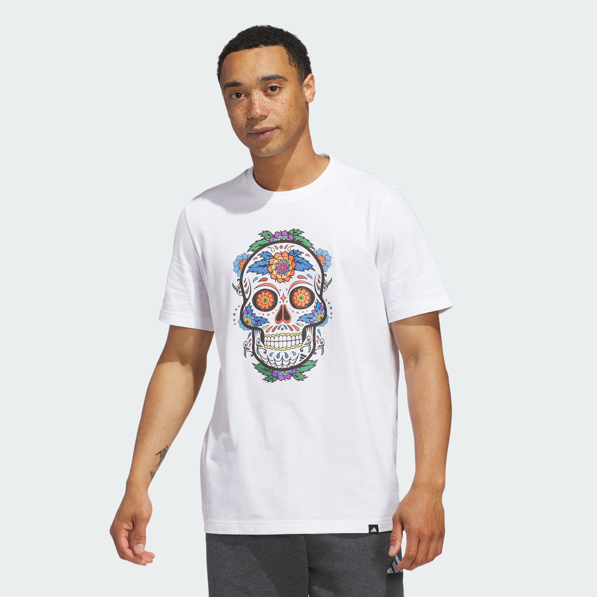La camiseta Sugar Skull Graphic es toda una declaración de audacia. Con su diseño atrevido y vibrante, esta camiseta es para quienes quieren destacar entre la multitud. Confeccionada con materiales transpirables, esta camiseta es una opción adecuada para el día a día. El corte clásico proporciona una sensación relajada, mientras que la confección de tejido de punto simple añade un toque de textura. Tanto si sales a la calle como si te relajas con tus amigos, esta camiseta te ayudará a ir elegante. adidas te trae otra prenda que combina estilo y comodidad. Añade esta camiseta a tu colección y lúcela con confianza.