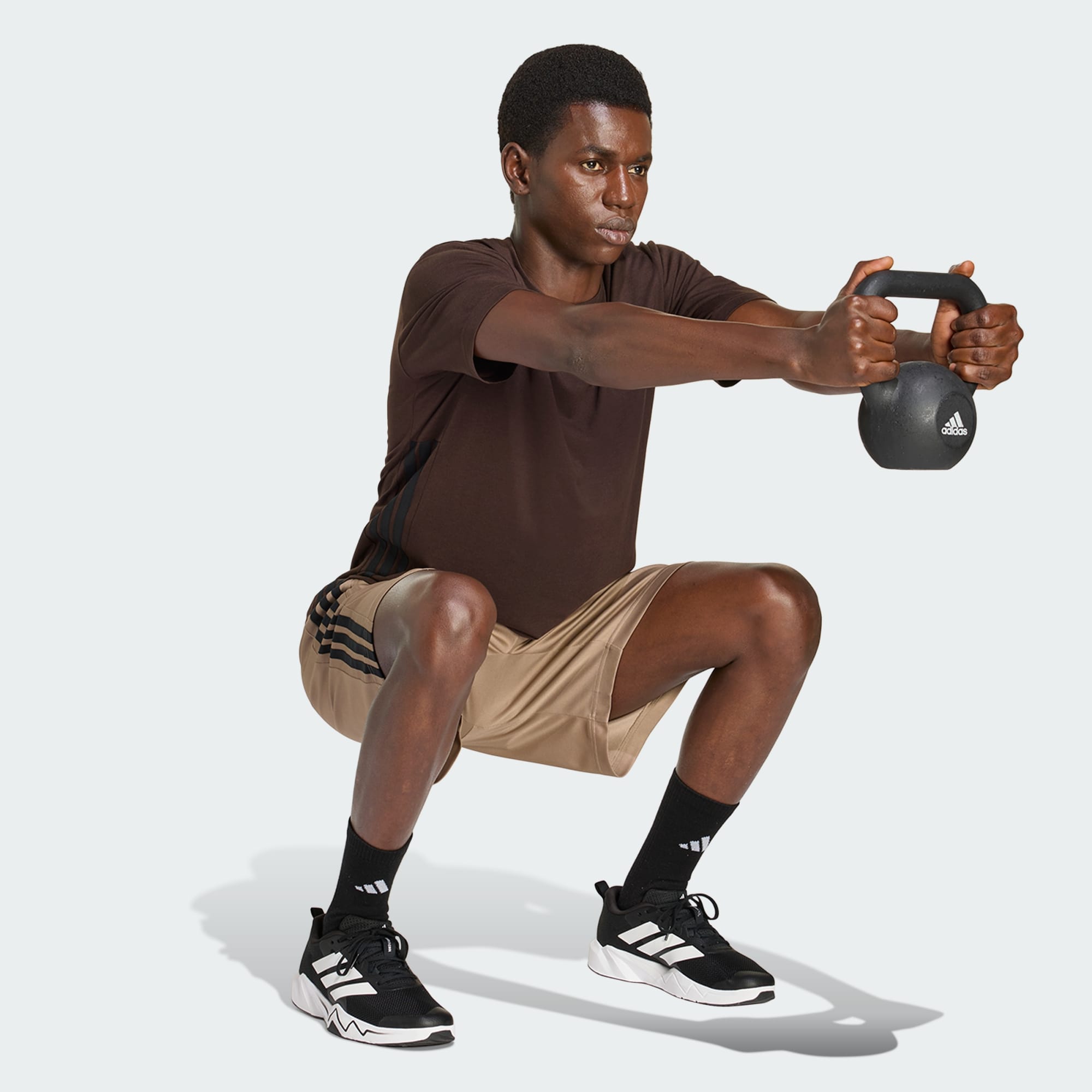 SHORTS WORKOUT ESSENTIALS BASE 3 TIRAS DE TEJIDO PIQUÉ, LARGO DE 23 CM