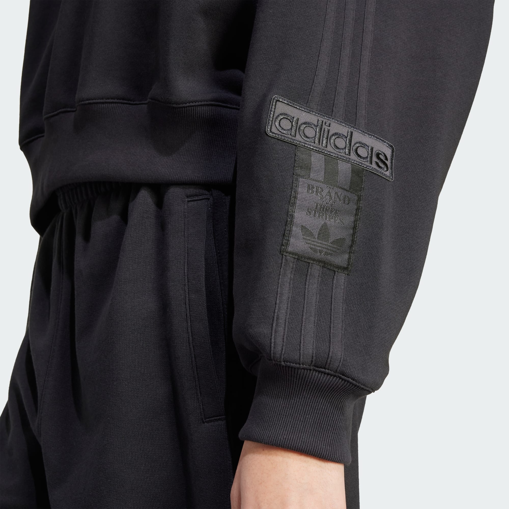 Esta sudadera por encima de la cintura de adidas es una versión moderna de un clásico deportivo. La suave felpa francesa te permite sumergirte en la comodidad, mientras que el corte holgado crea un ambiente relajado. Los pantalones con botones a presión Adibreak de los 90 inspiran las 3 Tiras que recorren los laterales. Es un look retro y actual a la vez.
