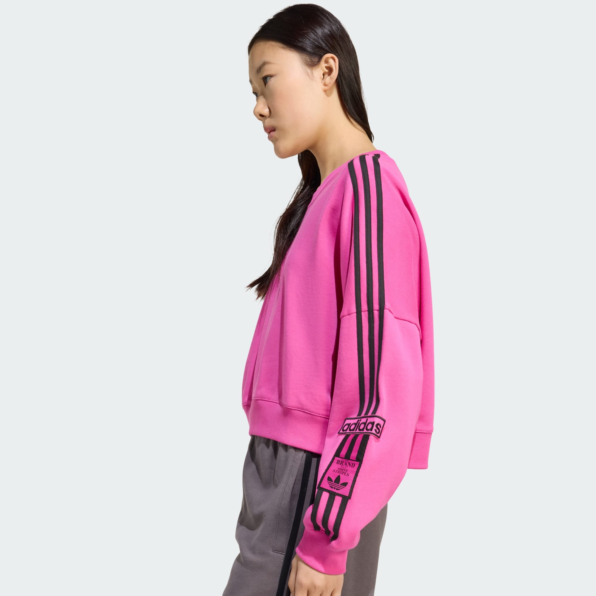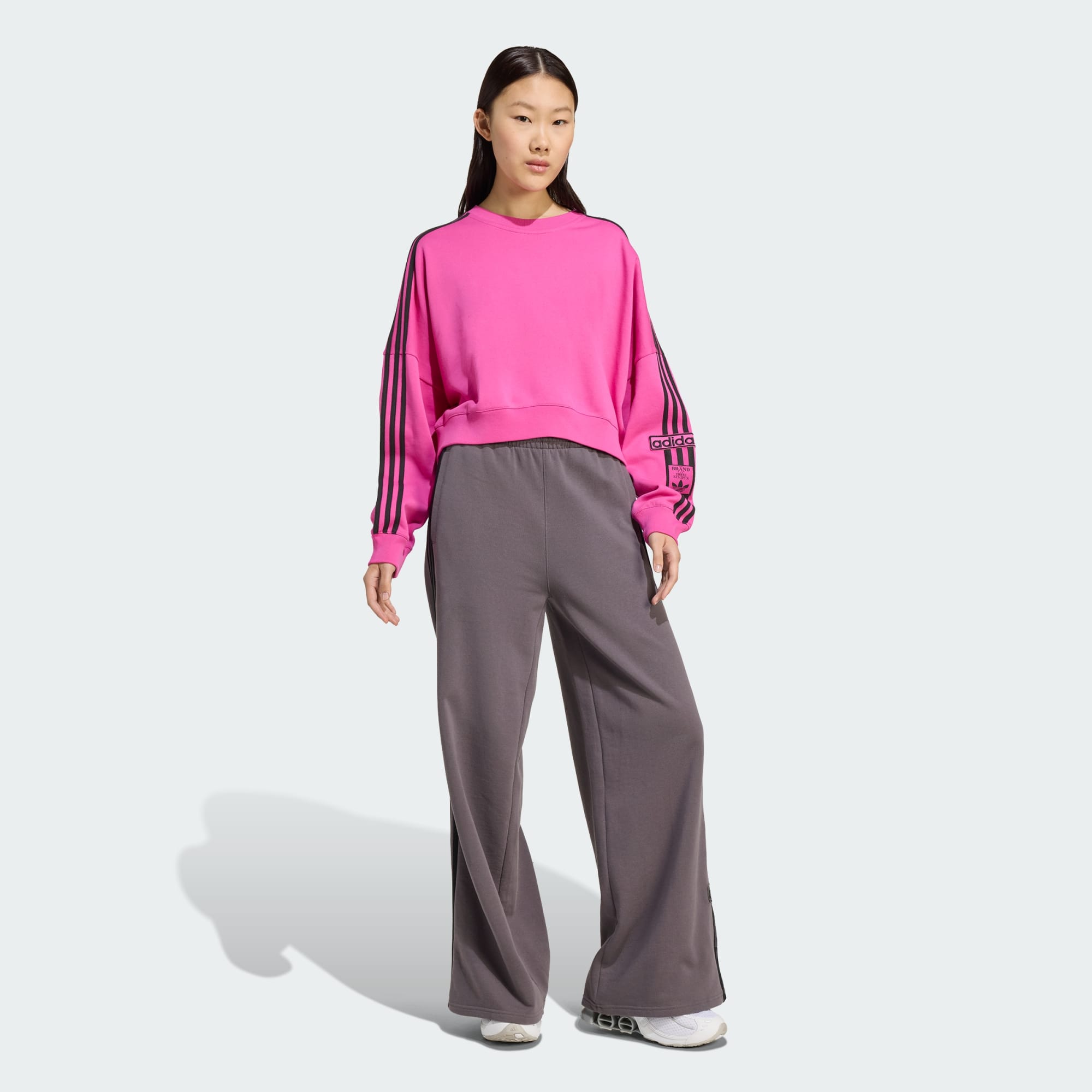 Esta sudadera por encima de la cintura de adidas es una versión moderna de un clásico deportivo. La suave felpa francesa te permite sumergirte en la comodidad, mientras que el corte holgado crea un ambiente relajado. Los pantalones con botones a presión Adibreak de los 90 inspiran las 3 Tiras que recorren los laterales. Es un look retro y actual a la vez.