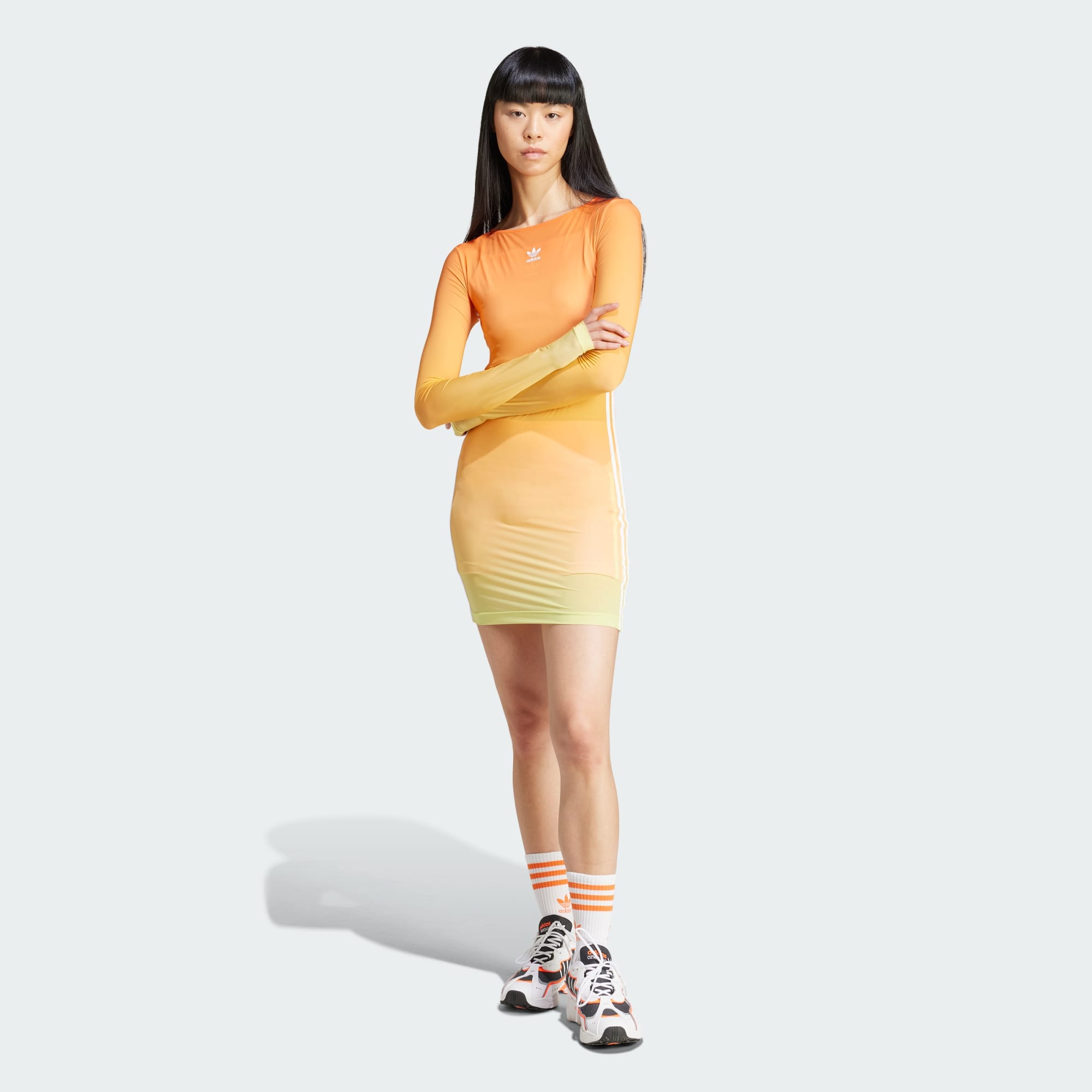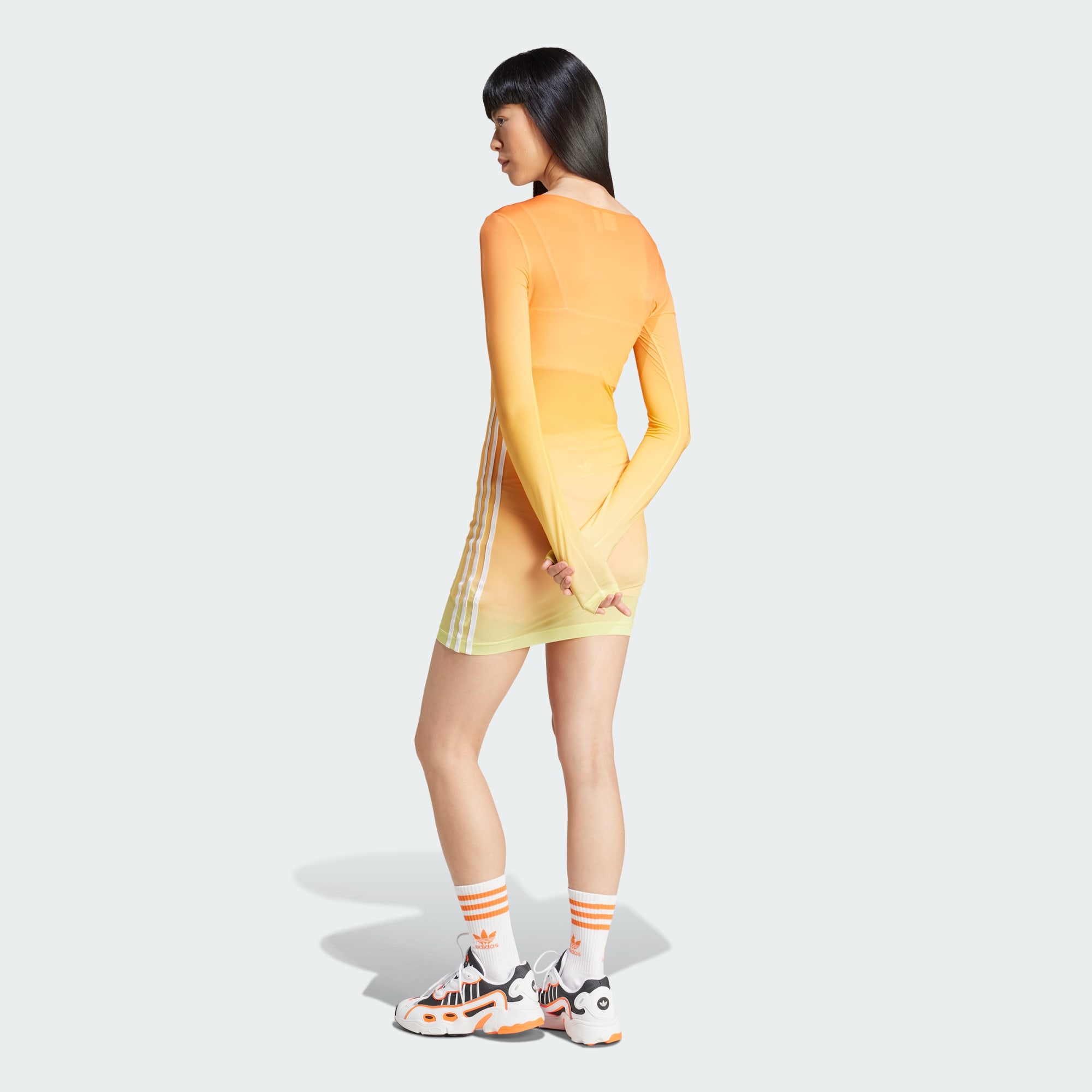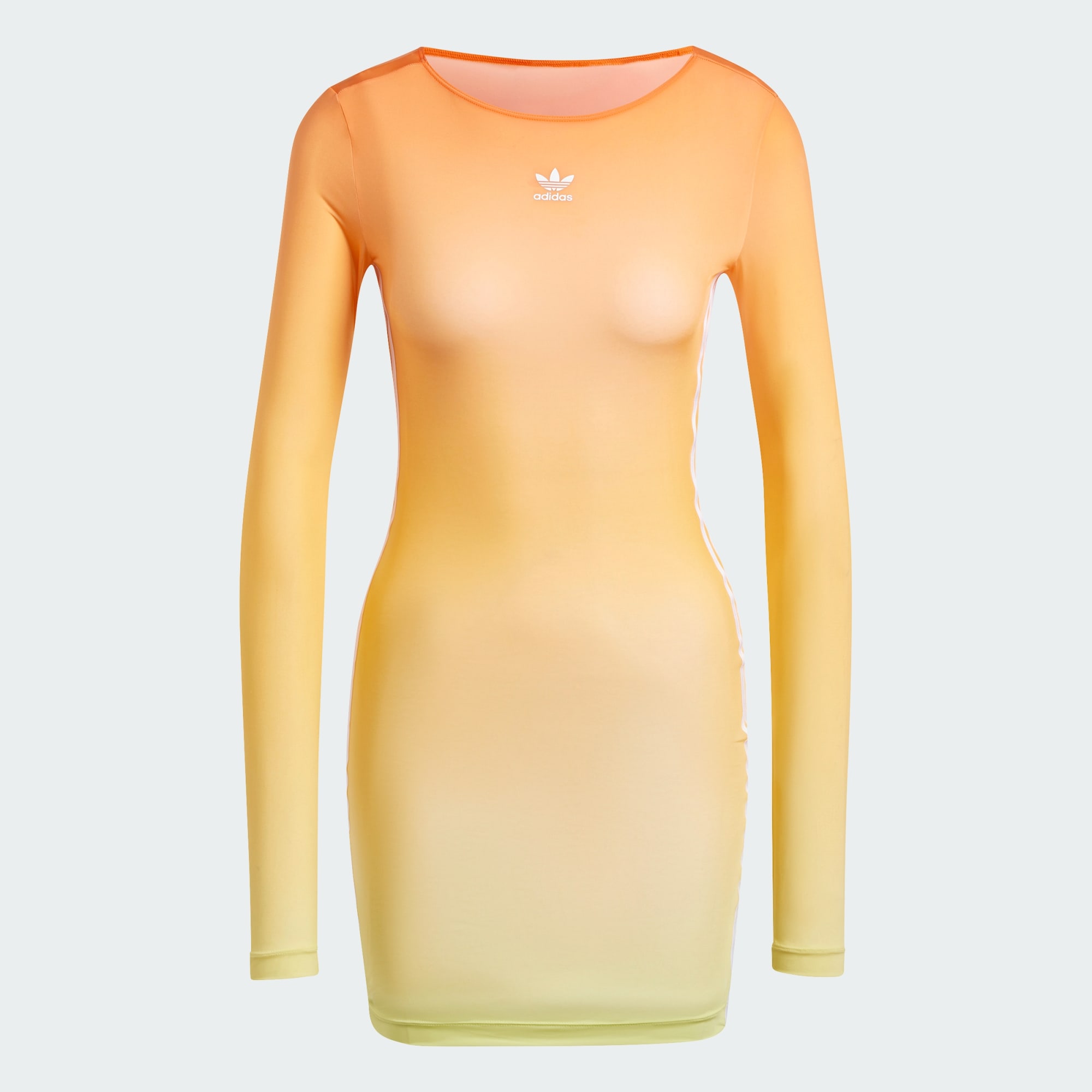 Creado para ofrecer comodidad y estilo, este vestido adidas mini te empodera para que expreses tu estilo casual. Su ajuste ceñido y las 3 Tiras en las mangas le ponen el toque final al look. Los colores en degradé le ponen una sensación de energía y actitud vibrante a tu día. Úsalo con zapatillas para lograr un look relajado que no le teme a desafiar los límites.