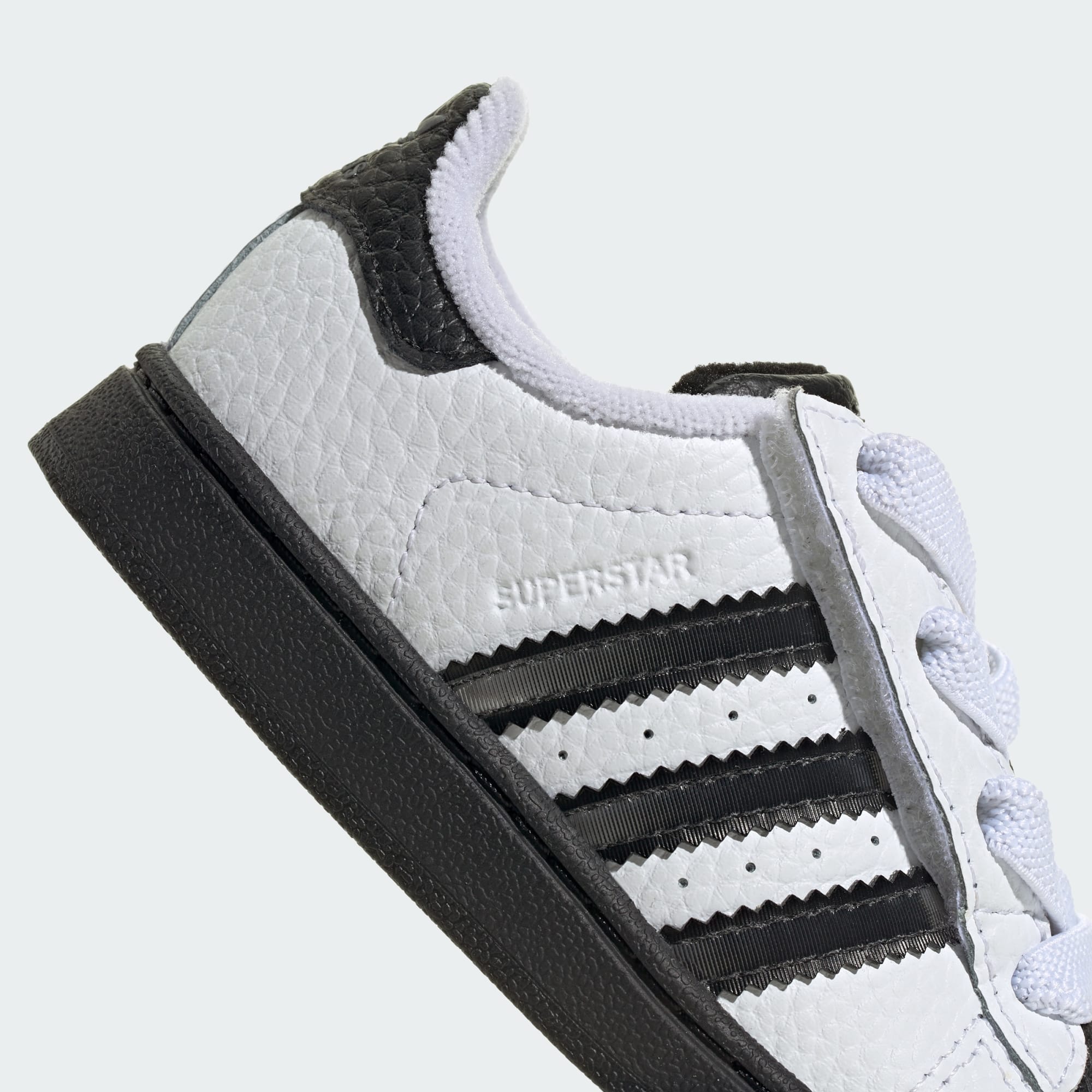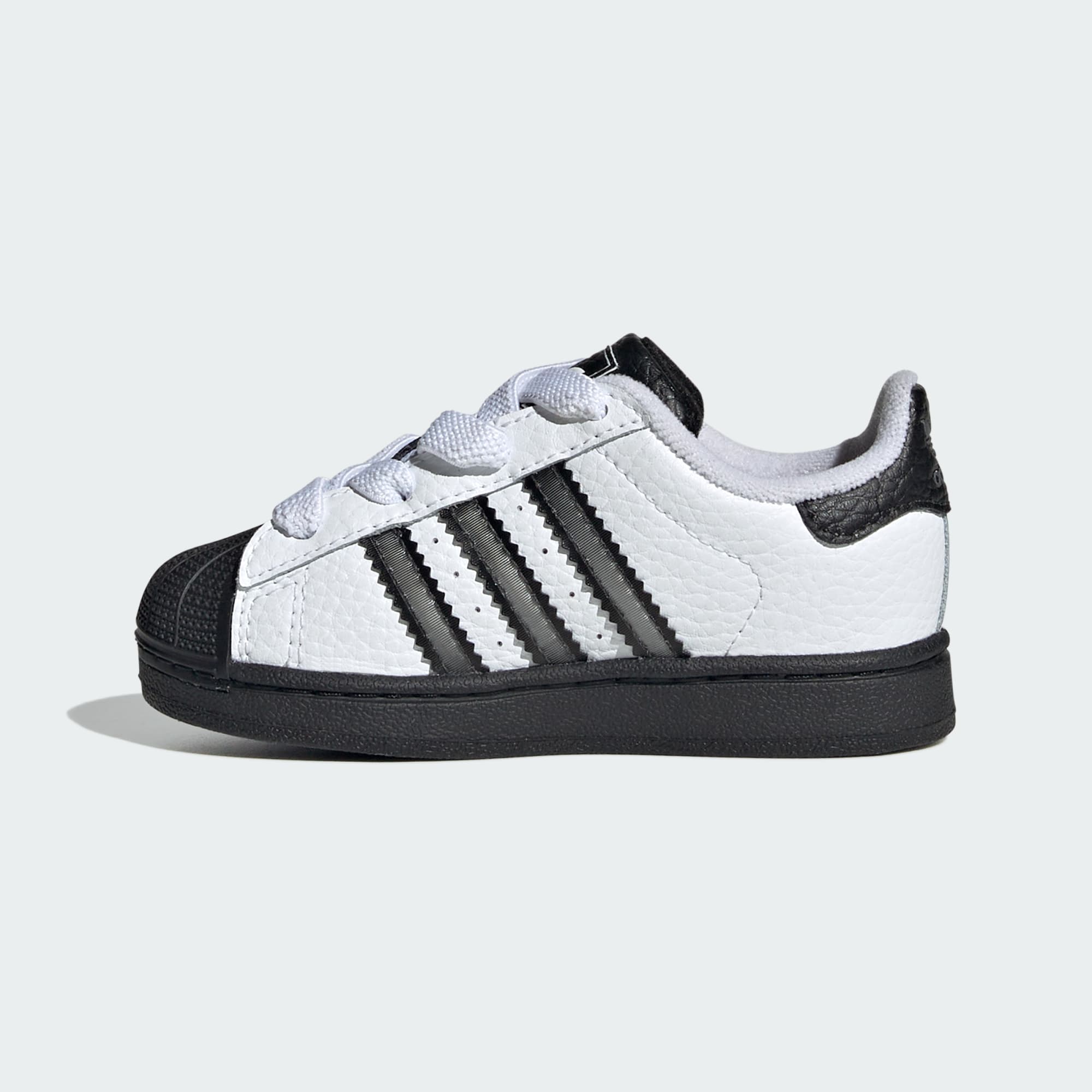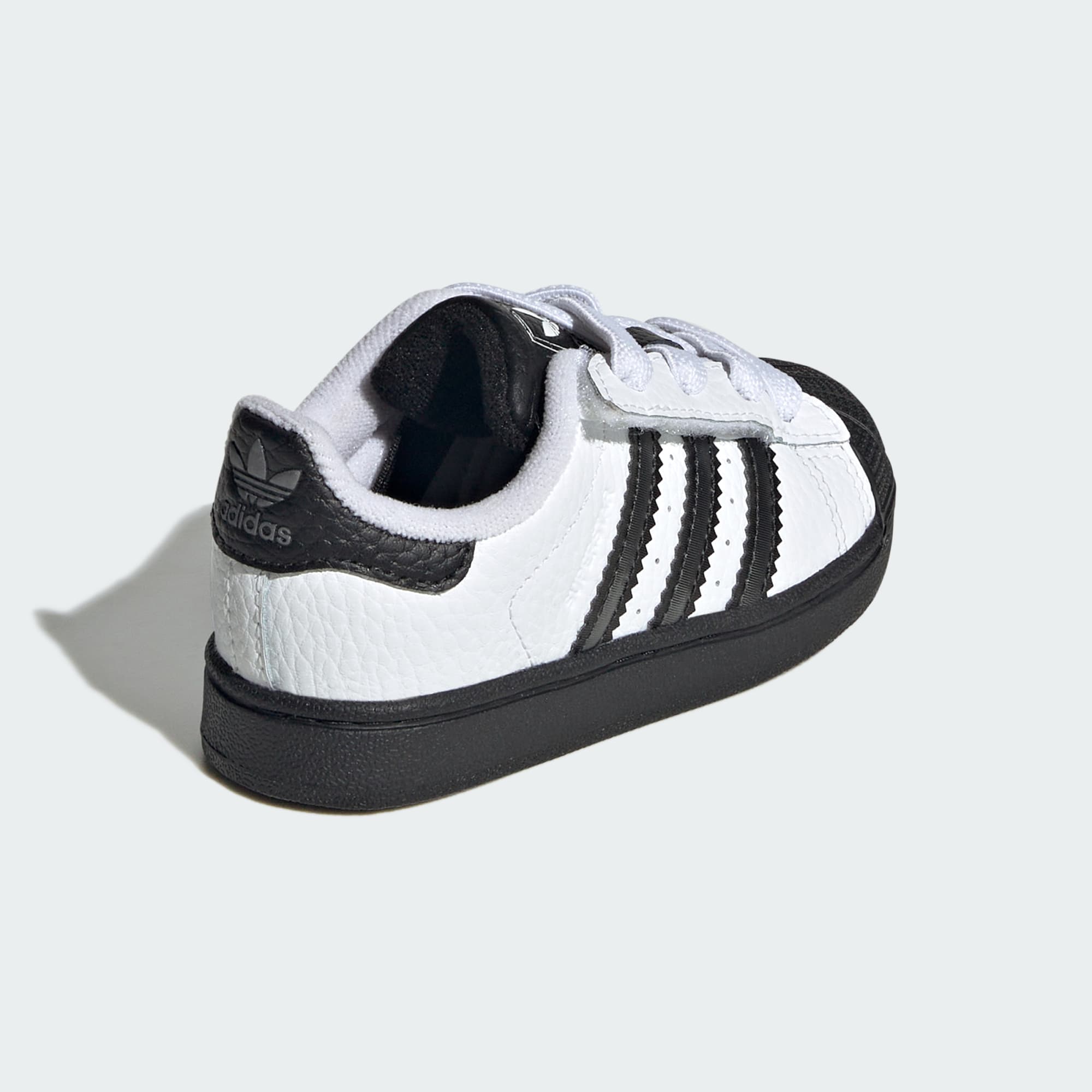 Al igual que tu pequeño, estas zapatillas para bebé tienen una gran personalidad. Una versión actualizada de las adidas Superstar que dominaron las calles en los años 90 y 2000, con un detalle lenticular único en las 3 Tiras que cambia de color según el ángulo de visión. El exterior de cuero suave y la icónica puntera con relieve hacen un guiño al original. Las tiras ajustables de cierre por contacto sobre los pasadores elásticos hacen que colocárselas y quitárselas de sus piececitos inquietos sea fácil.
