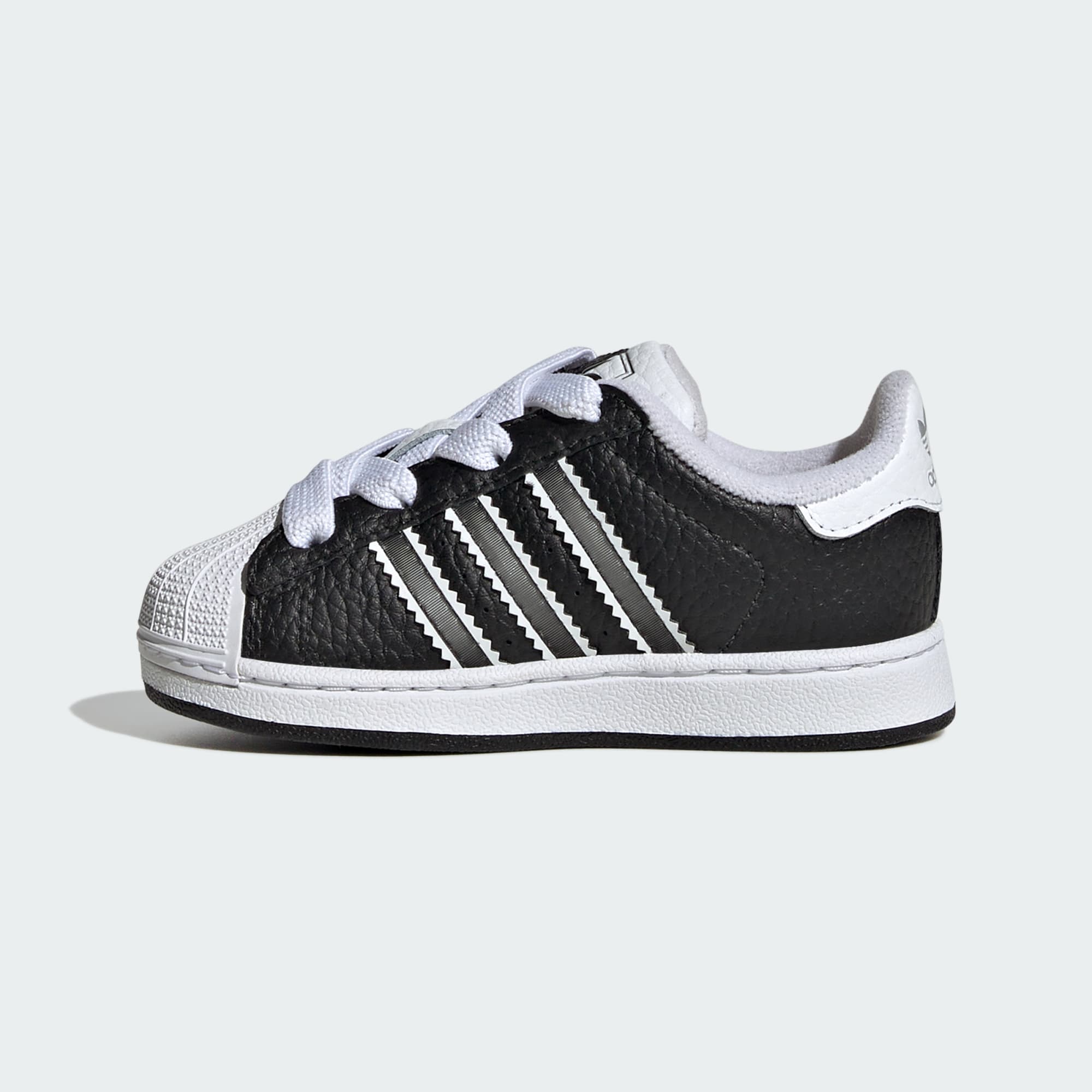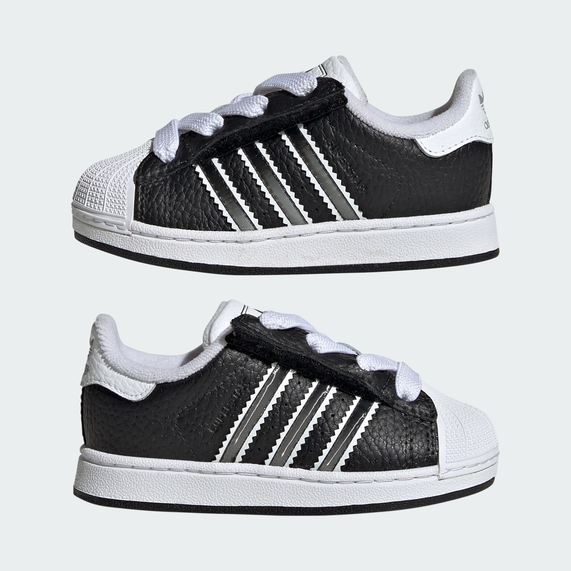 Al igual que tu pequeño, estas zapatillas para bebé tienen una gran personalidad. Una versión actualizada de las adidas Superstar que dominaron las calles en los años 90 y 2000, con un detalle lenticular único en las 3 Tiras que cambia de color según el ángulo de visión. El exterior de cuero suave y la icónica puntera con relieve hacen un guiño al original. Las tiras ajustables de cierre por contacto sobre los pasadores elásticos hacen que colocárselas y quitárselas de sus piececitos inquietos sea fácil.
